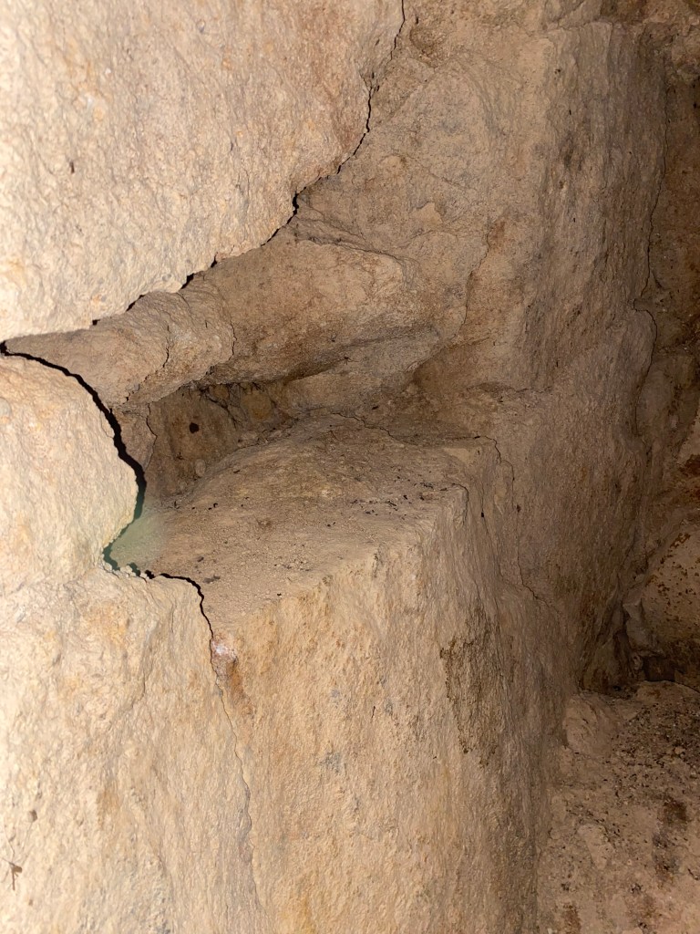 A mesterséges barlang falában, található egy bevésés, mely kísértetiesen emlékeztet régi oltárok kialakításához. Mindazonáltal, az is elképzelhető, hogy szimplán a járatot készítő munkások vésték, hogy odategyék a gyertyájukat.