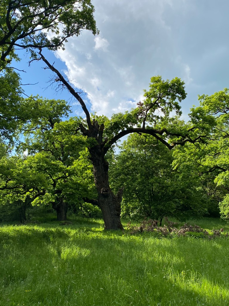A kastélypark ősi, villámlátott fái.